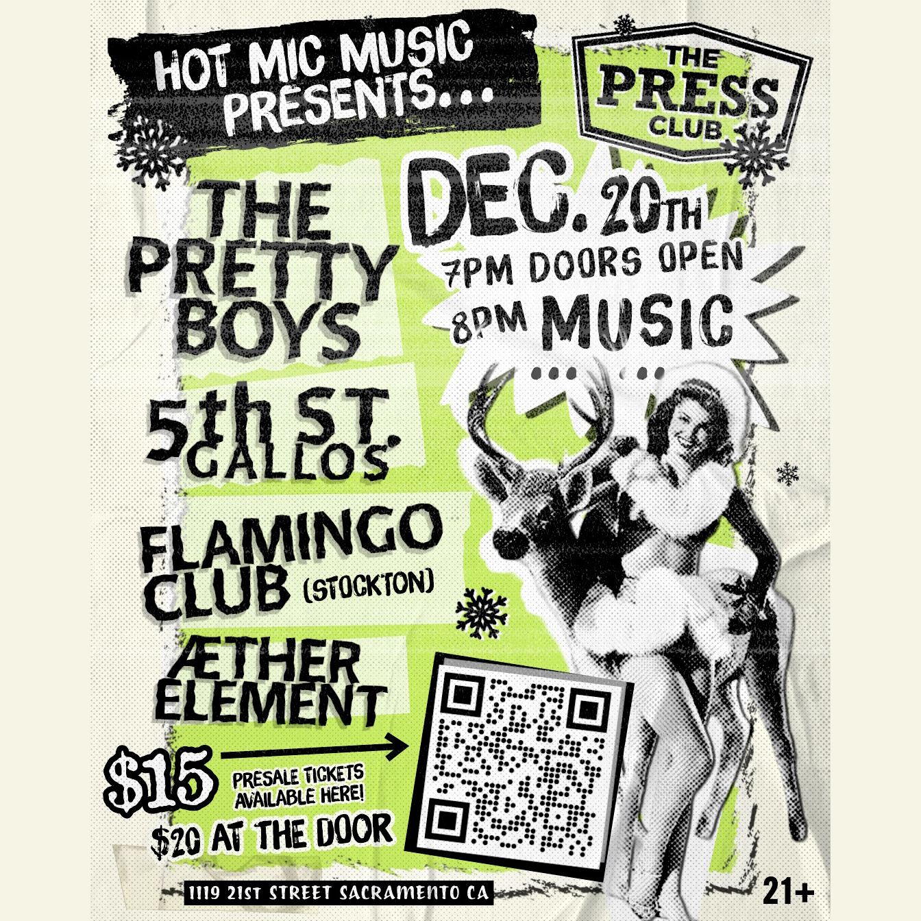 Join us at the Press Club for live music by Pretty boys, 5th Street Gallos, Flamingo Club, & Aether Element! 8pm, 21+