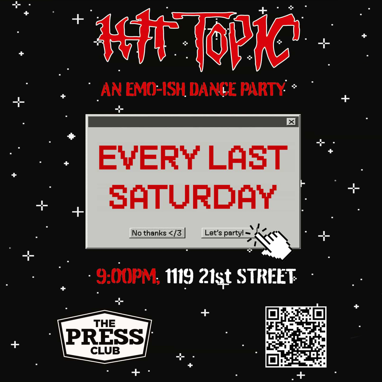 Join us for a night of Emo-ish music with DJ Angel baby! Every last Saturday! Special additions like crafts, vendors, and fingerboarding parks on rotation, depending on the month. See...