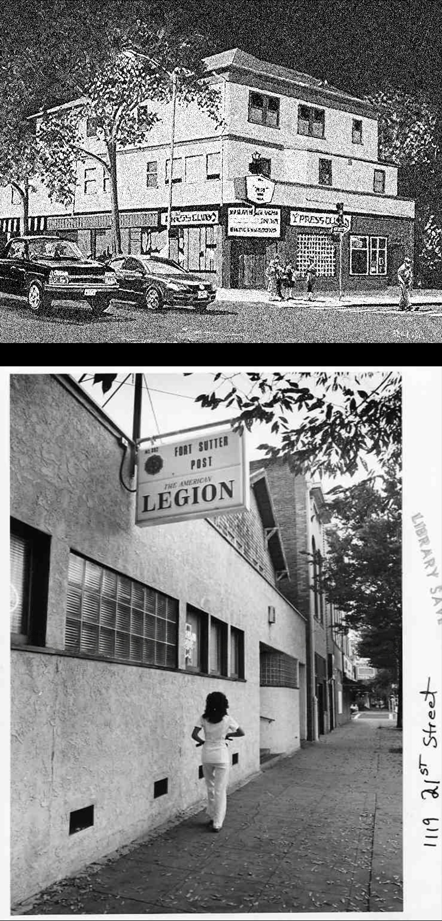 Below: Historic image of 1119 21st Street, circa 1981 as an American Legion Hall, where to new Press Club is now located.